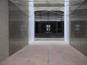 "This fall, in the Landbouwbelang in Maastricht, the result of a unique process will be on display. 25 recently graduated artists from the Gerrit Rietveld Academy in Amsterdam and from the Academy of Fine Arts in Maastricht organised and built an exhibition together. It is the first time that a project of this scale was realised by graduates of these two academies. For two weeks all artists were free to do as they pleased. They will show the result of an intense collaboration during which one total installation was created. The individual was secondary to the common need in a network, which came to life by connecting works and ideas together, turning it into a spectacle in which artworks stand on top of, inside of and mixed with each other."