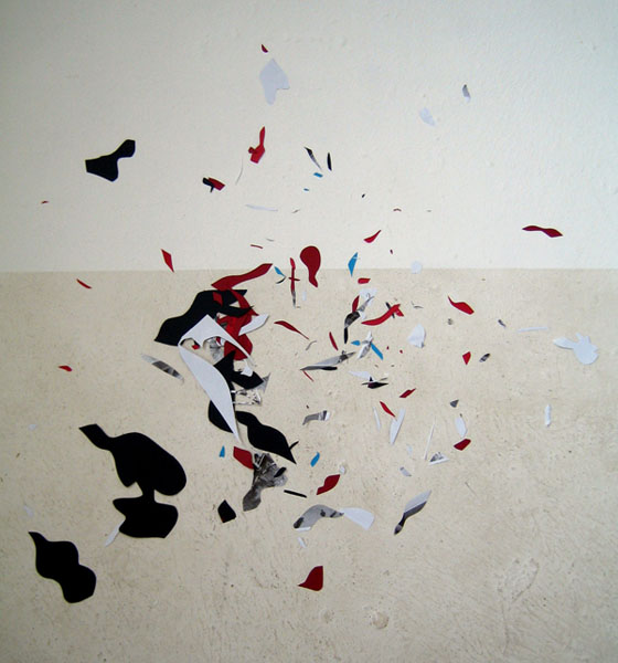 installaties en site-specific werk | grafiek | animaties < vorige volgende > Fall nr.3 2006 vloerinstallatie latex, papier 90 x 120cm