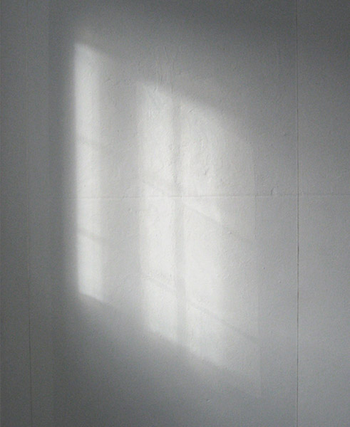 Double Actual 2007 muurschildering latex, zilverzand, lichtreflectie 100 x 300cm zie de film hier